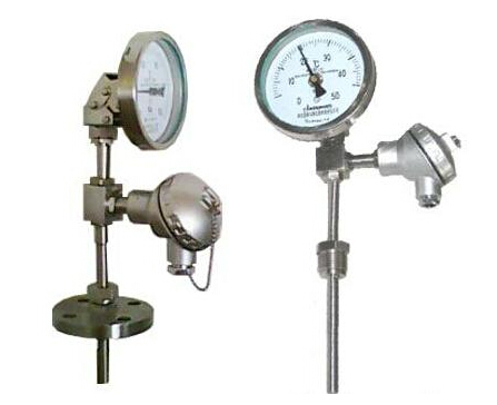 遠(yuǎn)傳雙金屬溫度計(jì)是將熱電阻或熱電偶的信號(hào)遠(yuǎn)傳功能與雙金屬溫度計(jì)就地指示功能相結(jié)合,它既能滿足現(xiàn)場(chǎng)測(cè)溫需求,亦能滿足遠(yuǎn)距離傳輸需求,遠(yuǎn)傳雙金屬溫度計(jì)可以直接測(cè)量各種生產(chǎn)過(guò)程中的 -40~+600℃范圍內(nèi)液體、蒸氣和氣體介質(zhì)以及固體表面的溫度測(cè)量。